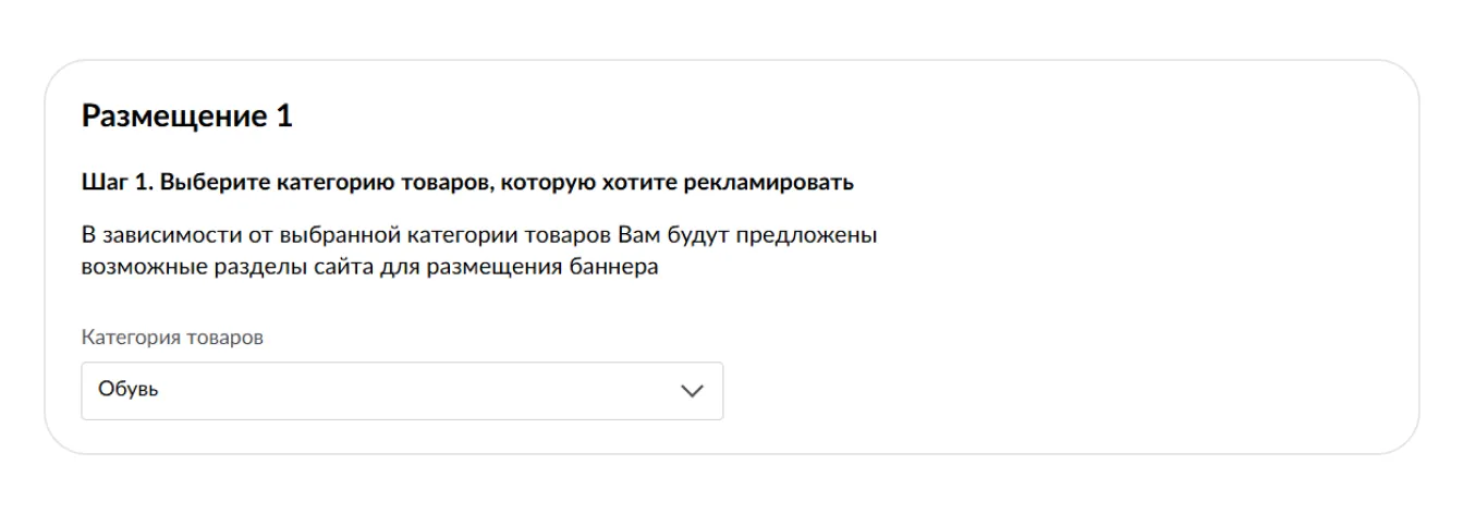 В блоке «Размещение» выберите категорию товаров, которую хотите рекламировать.