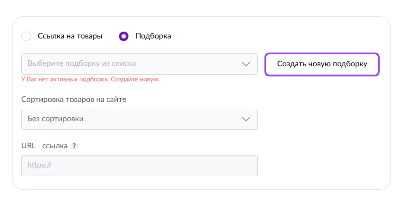 Если подходящей подборки нет в списке, нажмите «Создать новую подборку» или используйте ссылку на бренд.