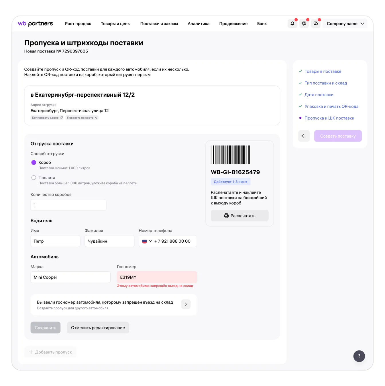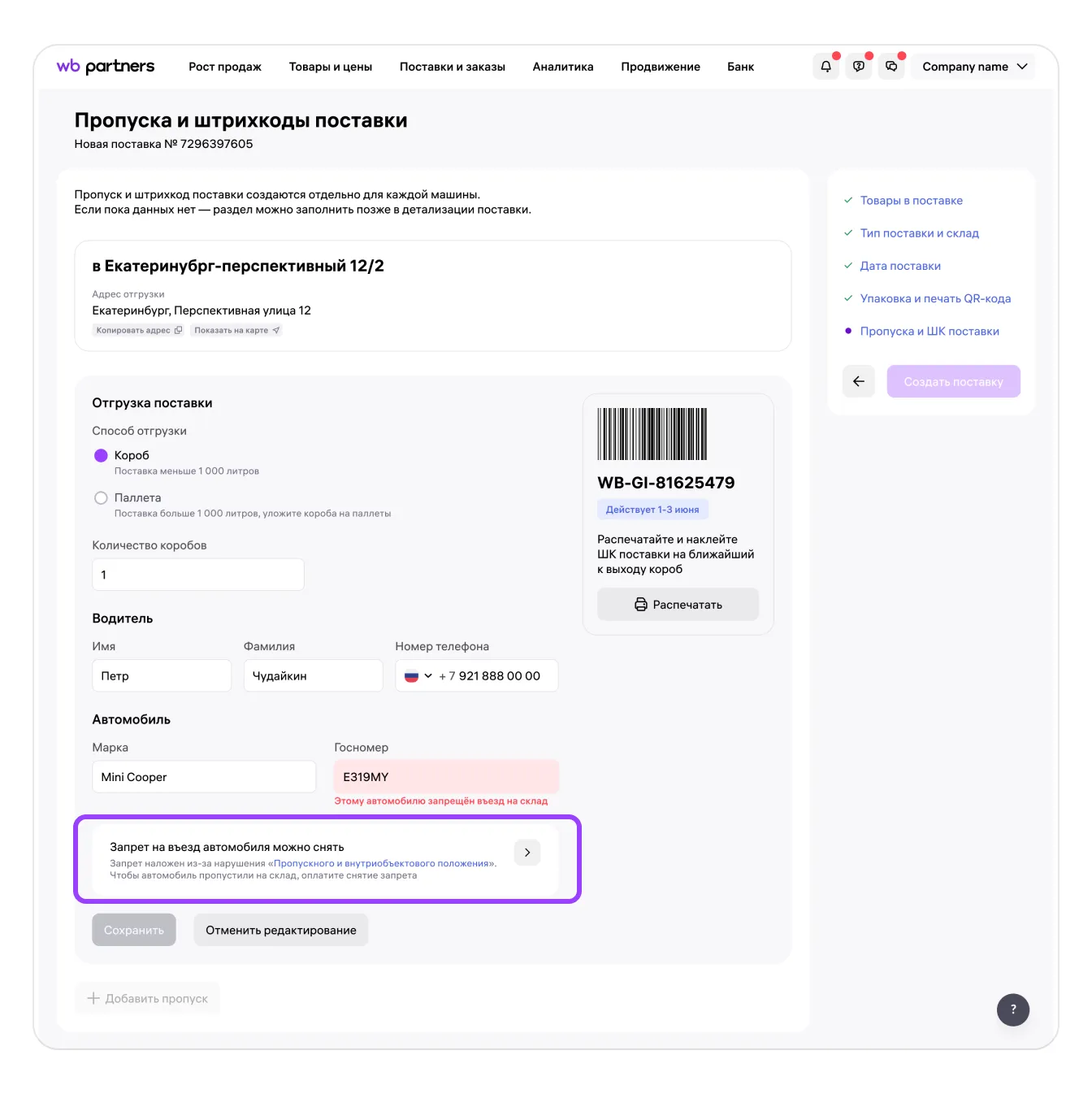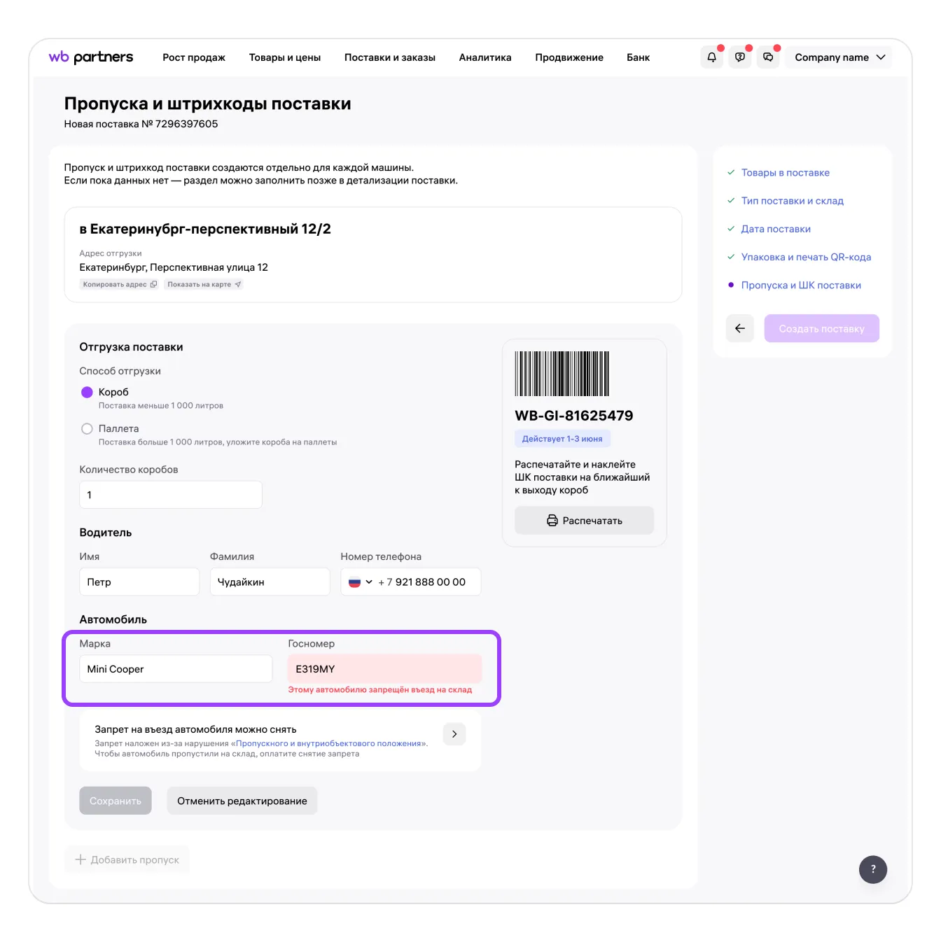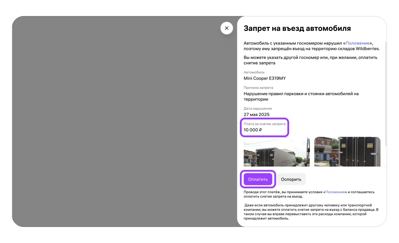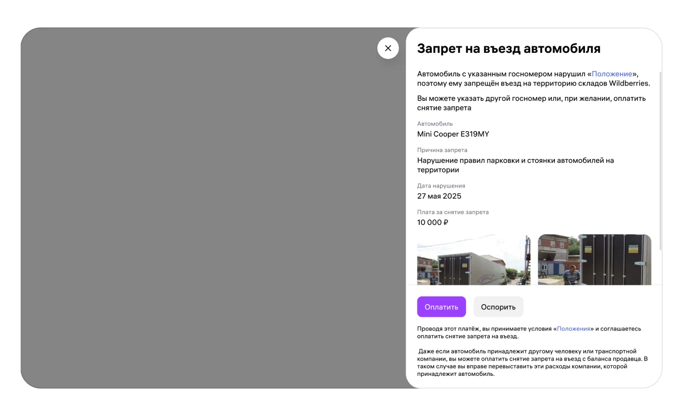 Более 3 нарушений правил, которые действуют на территории склада | Бессрочный запрет въезда автомобиля на объекты Общества и/или расторжение договора |