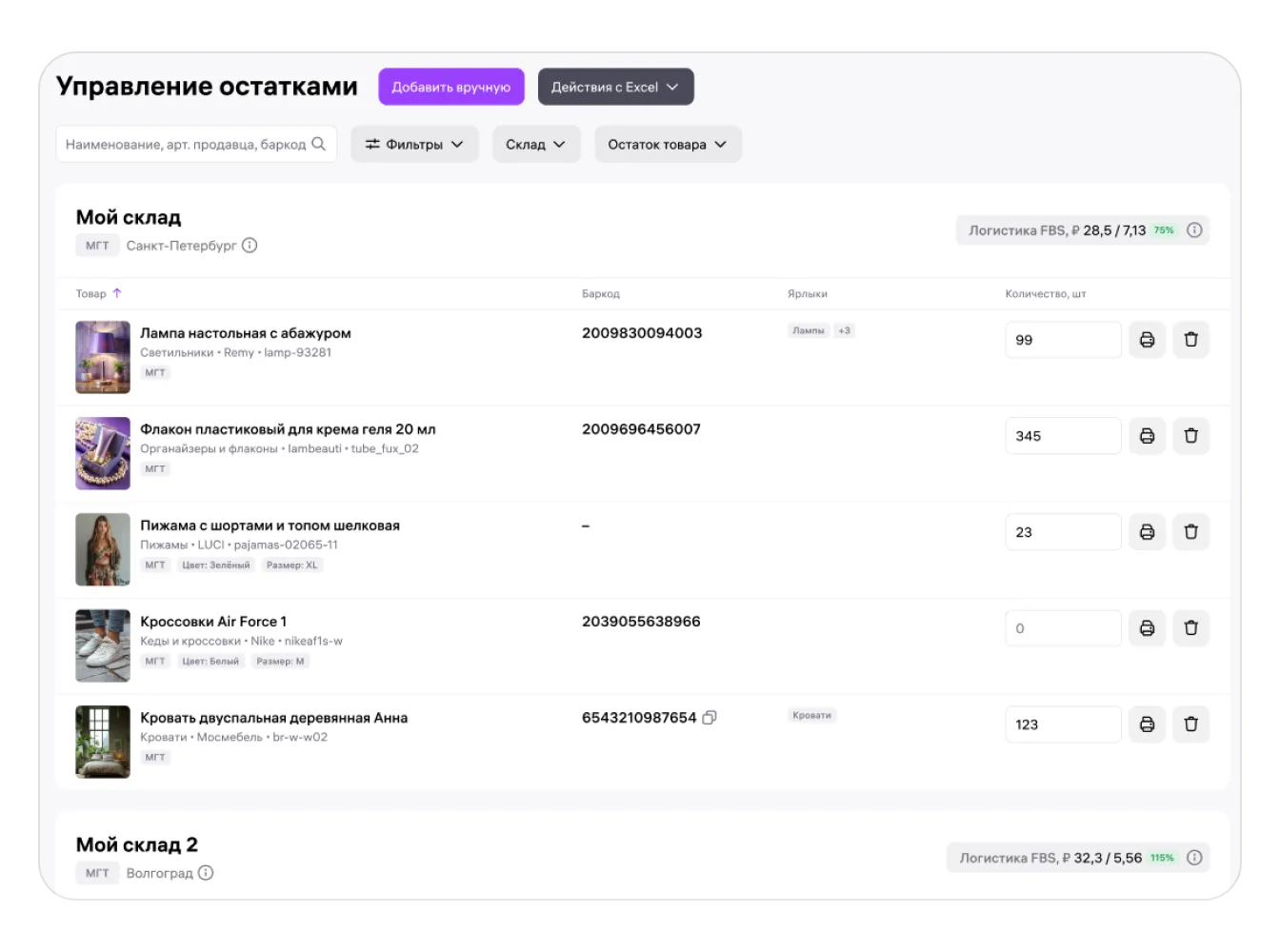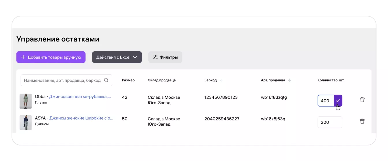 Обновлено 29.12.2025Управление остатками по модели FBS