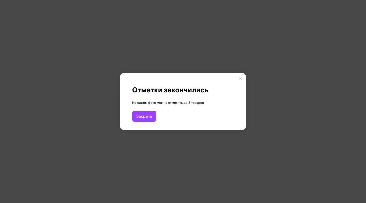 Если на фотографии в карточке одного товара есть и другая продукция из вашего ассортимента, можно добавить отметки (теги) — они помогут покупателю узнать о других товарах.