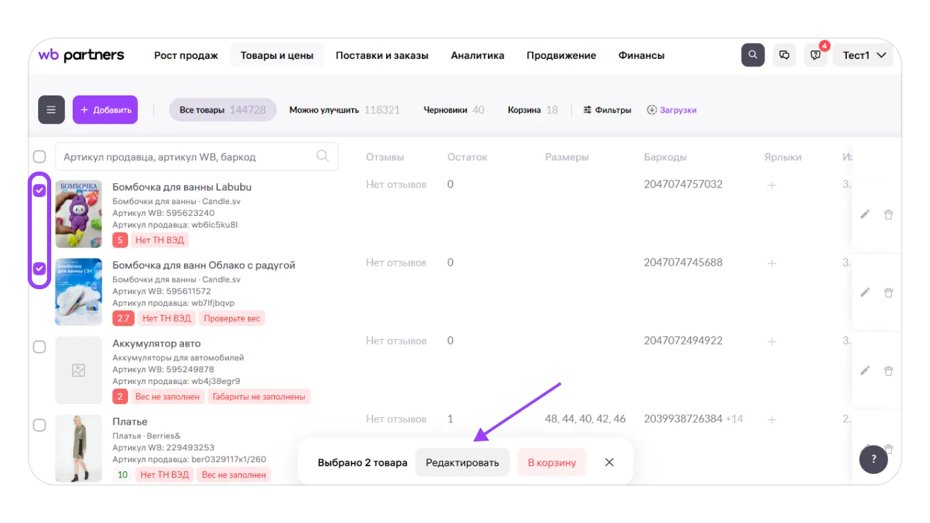 Обновлено 05.11.2025Массовое редактирование карточек товаров