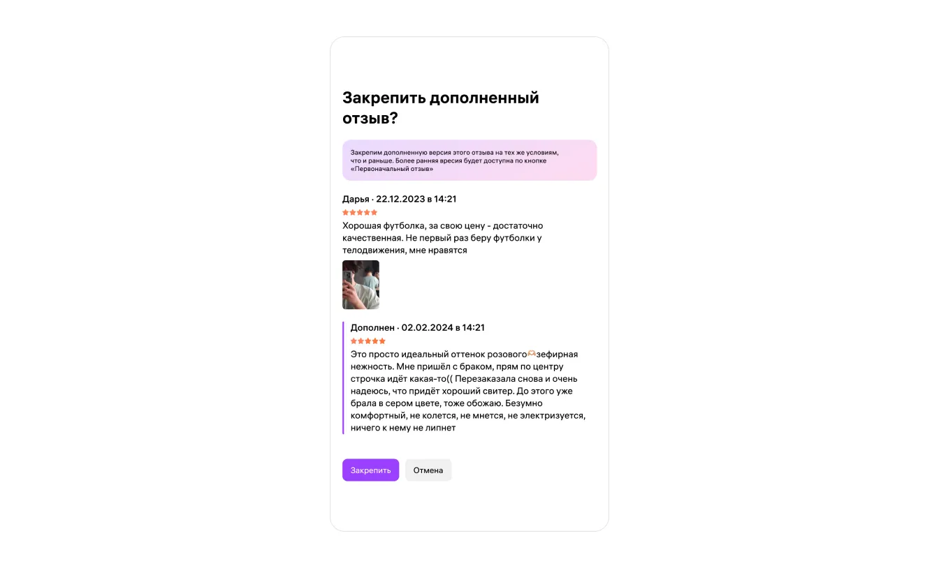 Как закрепить отзыв в объединённой карточке (склейке)
