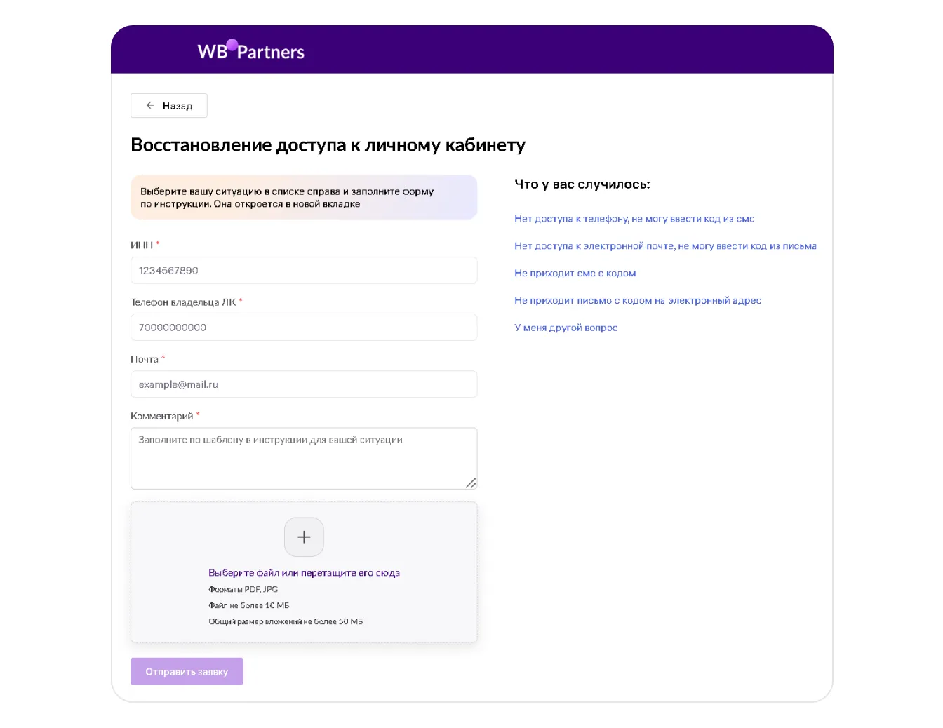 Чтобы восстановить доступ к личному кабинету, выберите в этой статье вашу ситуацию и заполните форму в соответствии с инструкцией: