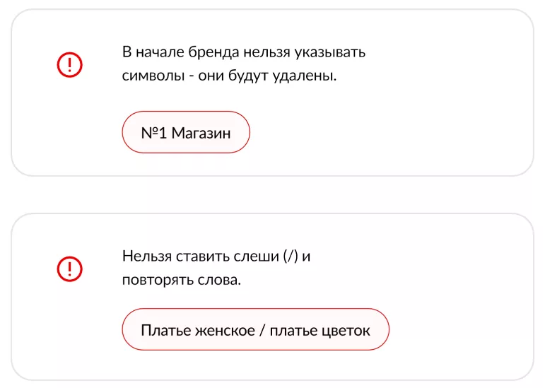 Чтобы карточки ваших товаров хорошо индексировались системой и покупатели видели их в поиске и фильтрах, правильно и в полном объёме указывайте уникальные значения без повторений в соответствующих полях.