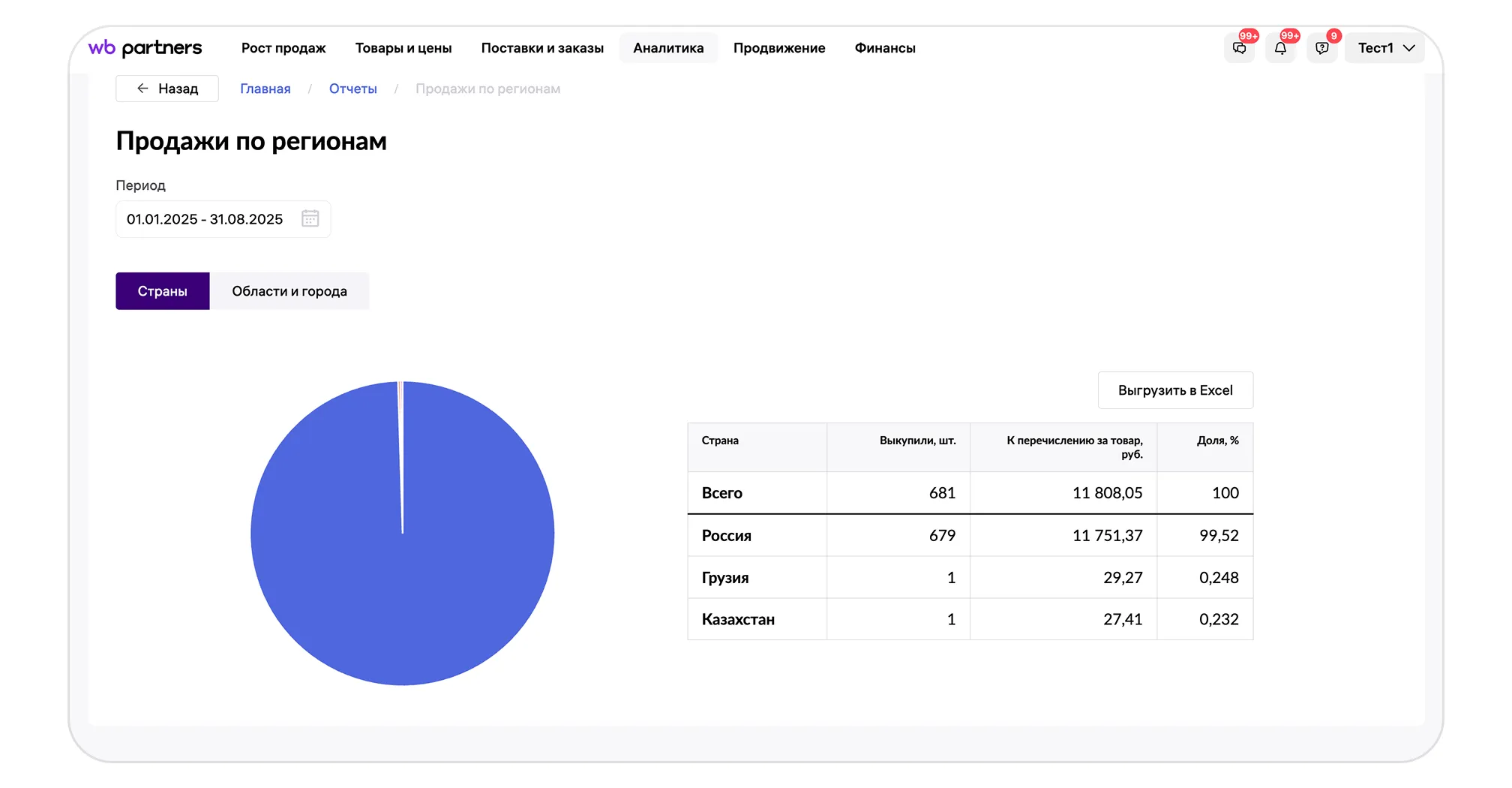 Обновлено 08.09.2025Отчёт «Продажи по регионам»