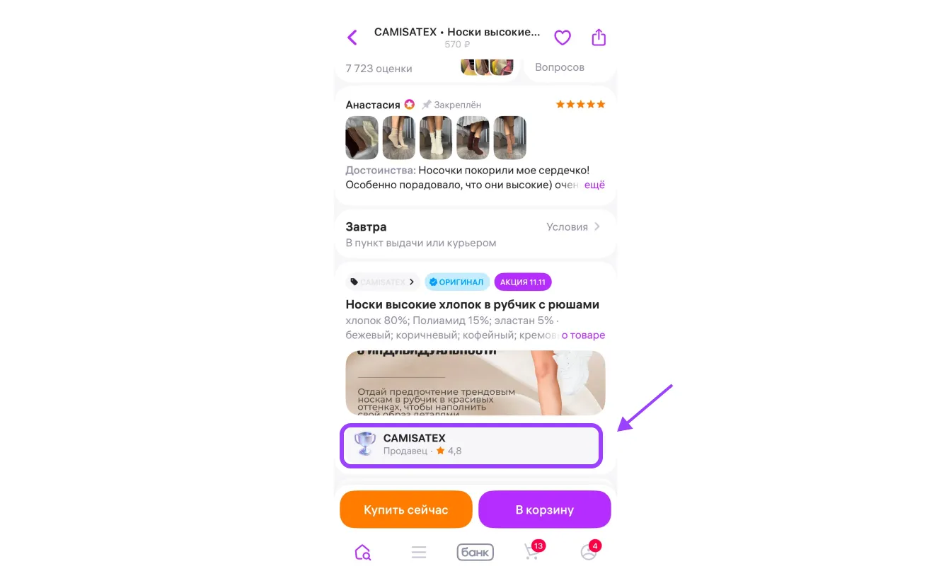 Вы также можете перейти в этот раздел со страницы магазина. Для этого нажмите на блок с рейтингом, который находится под названием магазина.