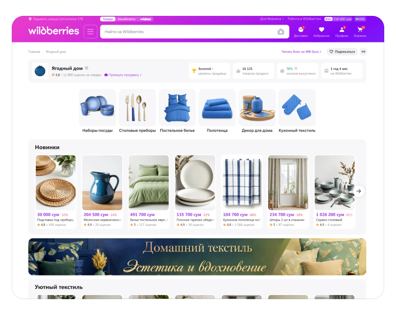 «Витрина магазина» — это набор инструментов, с помощью которых можно сделать страницу вашего магазина на сайте и в мобильном приложении Wildberries визуально привлекательнее для покупателей. Вот так может выглядеть страница вашего магазина с настроенной «Витриной»:
