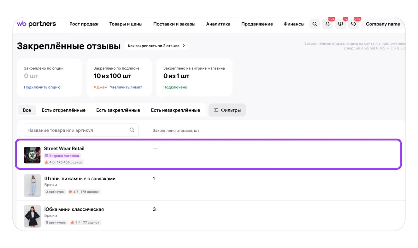 При активной подписке на «Витрину» вы можете закрепить один отзыв. Возможность докупать дополнительные лимиты не предусмотрена. Если вы открепите текущий отзыв, сможете закрепить другой. Если отключить подписку, закреплённый отзыв автоматически открепится.
