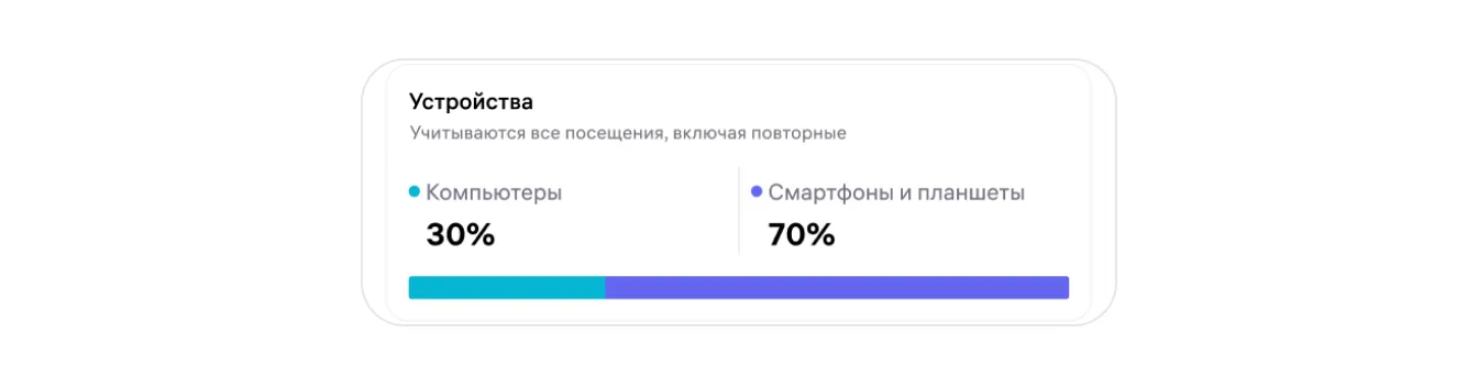 Тип устройства. Узнайте, заходят ли покупатели чаще с компьютера или с мобильных устройств.