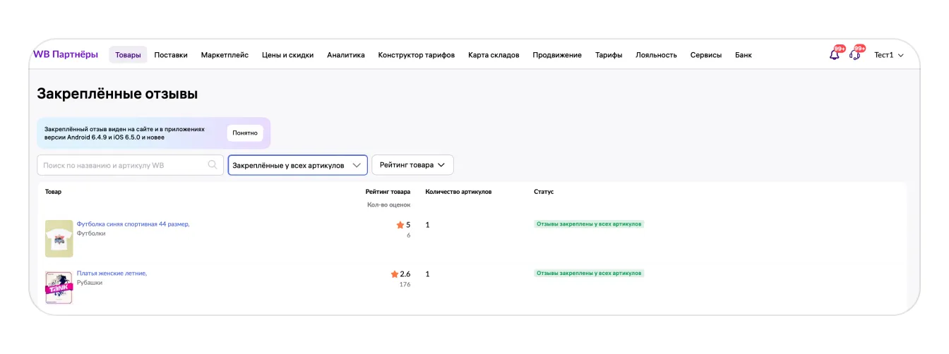 Возможность закрепить отзыв в карточке каждого товара — для продавцов с рейтингом 4,5 и выше.